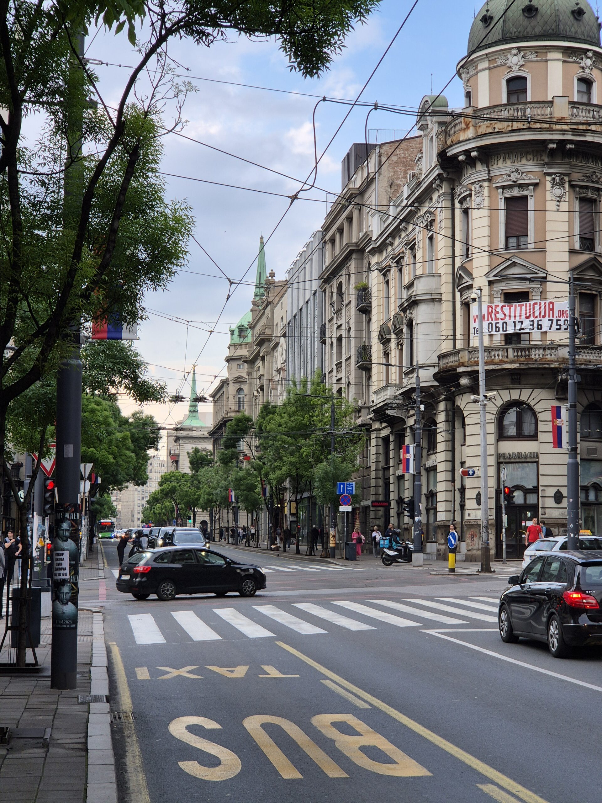Am nächsten Morgen, dem 22.04.2025, ging es dann von Višegrad weiter über die serbische Grenze nach Užice und Čačak bis nach Belgrad – hier umgangssprachlich auch Beograd genannt. Auf dem Weg dorthin traf ich viele interessante Menschen wie Ðorđe – der während der Fahrt seine Beatboxingskills zeigte – oder Jovana, die mich an diesem Tag die größte Distanz bis ins Zentrum von Belgrad fuhr. Nochmals Danke dafür! Während ich durch die Innenstadt von Belgrad schlenderte, gab es nur geringe Hinweise darauf, dass es hier in letzter Zeit zu Großdemonstrationen gekommen war. Die Menschen waren freundlich, saßen in Cafés oder gingen ihrem Leben nach. Ich verbrachte die Nacht im Hostel Good People und gönnte mir zum Abendbrot einen saftigen Burger mit Pommes. Irgendwie hatte ich da Lust drauf nach der eher mäßigen Pizza vom Vorabend. Ich denke ich sollte sowieso mehr die lokale Küche kennenlernen!