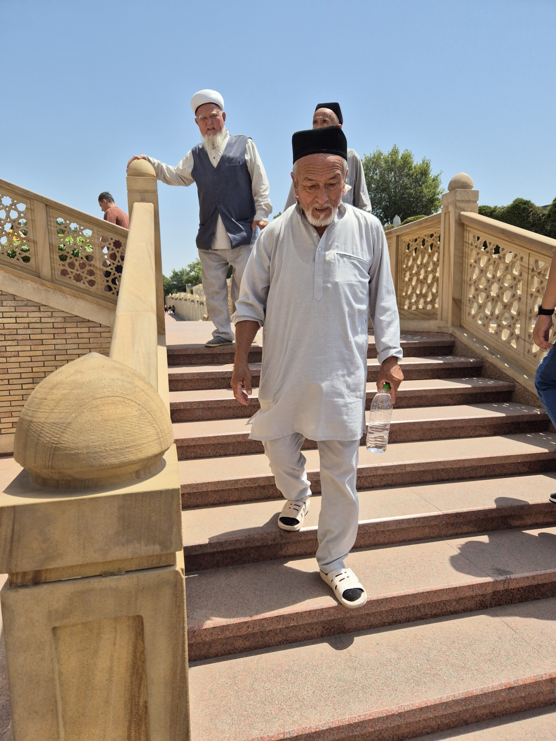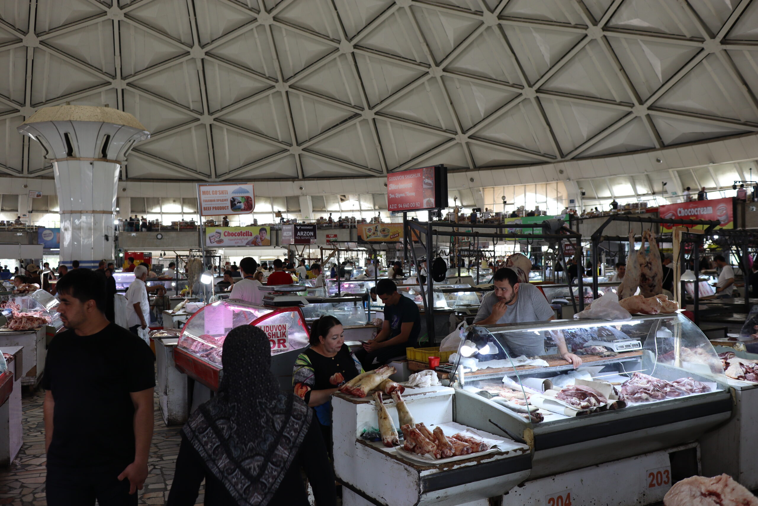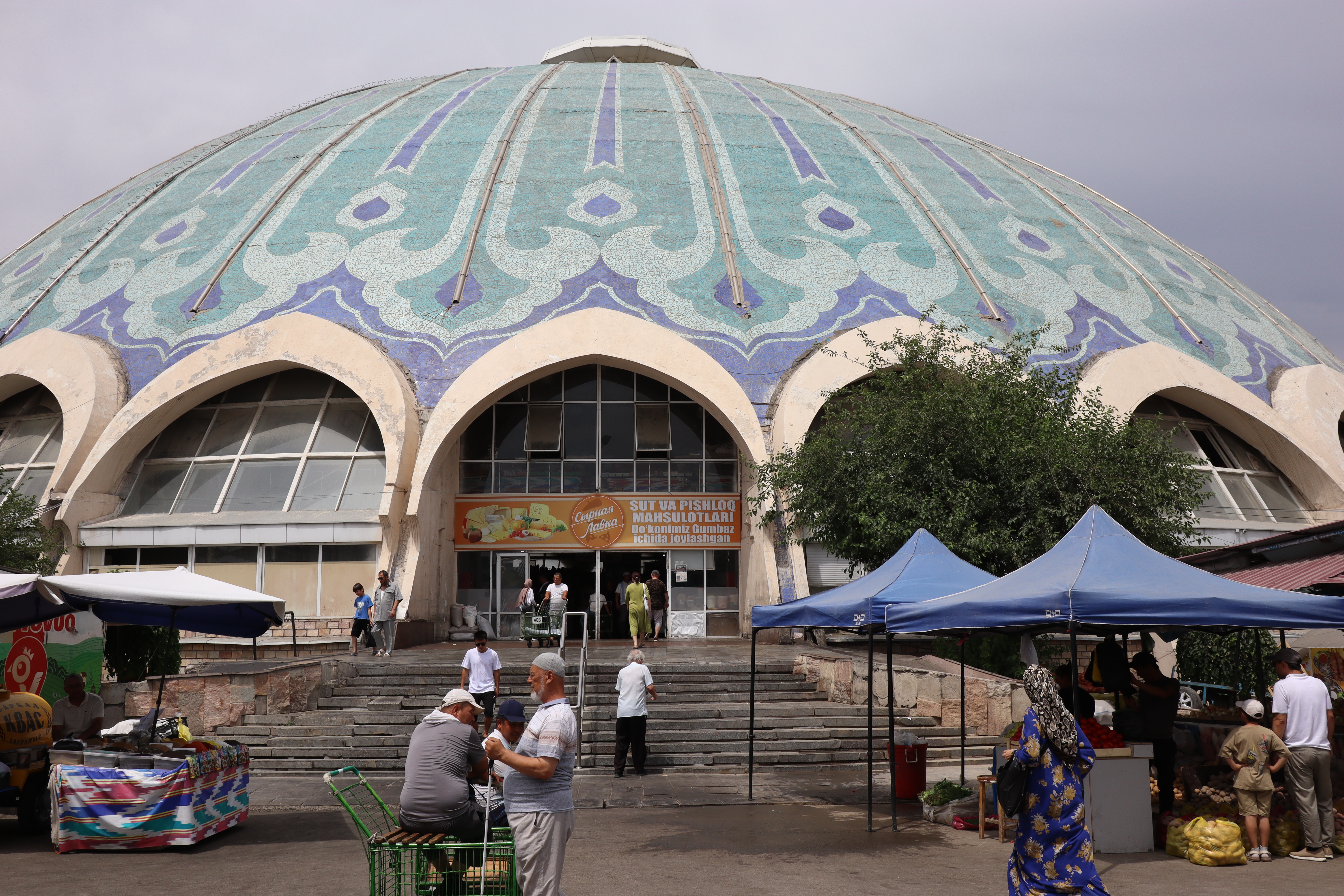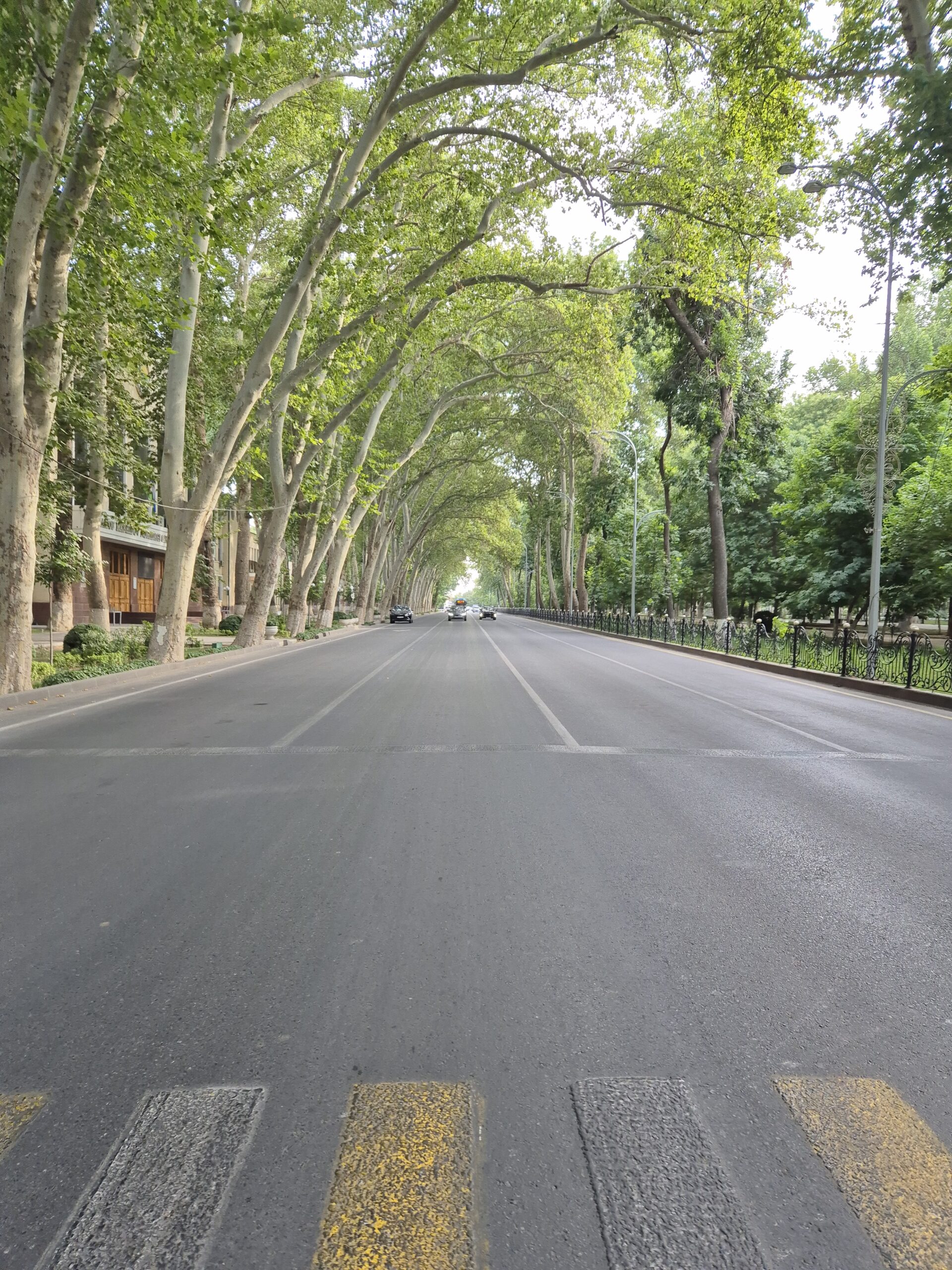 Am Vormittag des 07.07.2025 verließ ich zu Fuß Schymkent und versuchte mein Glück nach Taschkent zu trampen. Zuerst musste ich jedoch an den Horden von Taxifahrern vorbei, die versuchten mich aufzuhalten und mich als potentiellen Fahrgast zu gewinnen. Entschieden lehnte ich alle Versuche ab und folgte der Staße in Richtung Taschkent weiter aus der Stadt hinaus. Die penetranten Taxifahrer wurden weniger und gleichzeitig stieg meine Chance auf einen kostenlosen Lift. Grob eine Stunde später wurde ich von einem Kleinbus für umsonst eingesammelt und direkt bis an die Usbekische Grenze gebracht. Sogar ein kaltes Wasser wurde mir vom Fahrer zugeschoben mit den Worten „Kasachstan“. Der Grenzübergang Kaplanbek nach Usbekistan zu dem ich gebracht worden war, war menschenüberlaufen, da der eigentliche Grenzübergang Zhybek Zholi seit einiger Zeit geschlossen war. Trotz vieler Menschen lief die Grenzüberquerung recht reibungslos ab. Endlich in Usbekistan waren es nur noch wenige Kilometer bis nach Taschkent. Der selben Taktik wie aus Schymkent hinaus folgend, distanzierte ich mich erst wieder ein bis zwei Kilometer von der Grenze, bevor ich den Daumen raus hielt und erzielte den selben Erfolg. In der Innenstadt tauschte ich so schnell wie möglich meine restlichen Kasachischen Tenge für Usbekische So’m ein und war plötzlich mit noch größeren Zahlen als bereits in Kasachstan konfrontiert. Ein Euro waren grob 14500 So’m wert. Wie schon in Kasachstan war das Bus- und Bahnfahren innerhalb der Stadt äußerst erschwinglich und kostete nur 3000 So’m. So konnte ich mich die nächsten Tage zügig durch die Stadt bewegen. Besonders die Metro war extrem schnell und praktisch. Wie besprochen traf ich mich am Abend mit Artem, bei dem ich zwei Tage lang übernachten konnte. Die Kehrseite der Medallie war jedoch, dass ich ebenso früh wie er aufstehen und mit ihm das Appartement verlassen musste, da Artem von früh bis spät arbeiten musste. War Artem Daheim, so unterhielten wir uns ausgedehnt über globale Themen und Politik, war Artem am Arbeiten, so trieb ich mich in der Stadt um und erkundete Taschkent ausgiebig. Angefangen beim Amir-Temur-Platz und dem Staatlichen-Temuridenmuseum über den Chorsu-Basar und den Hazrati-Imam-Komplex bis hin zum Tavlat-Tabiat-Museum, nichts war vor mir sicher. Besonders der Chorsu-Basar und der Hazrati-Imam-Komplex waren interessant. Während man auf dem Basar vom Huhn bis zur traditionellen Kleidertracht alles erstehen konnte, was das Herz begehrte, so war der Hazrati-Imam-Komplex eine einzige riesige Baustelle, im Begriff einmal vollkommen neu renoviert und modernisiert zu werden. Zum Abschluss des Tages besuchte ich noch aus Jux die gerade neu eröffnete Tashkent-City-Mall. Die nigelnagelneue Einkaufsmeile strotzte nur so vor Prunk, Markengeschäften und teuren Autos, die in der Mall ausgestellt wurden und schien der neue Magnet innerhalb Taschkents zu sein. So viel Luxus hatte ich ehrlich gesagt nicht in Usbekistan und Taschkent erwartet und verstand ein wenig, warum die Menschen dorthin strömten. Sie waren stolz auf ihr Land, dass es so weit gekommen war.