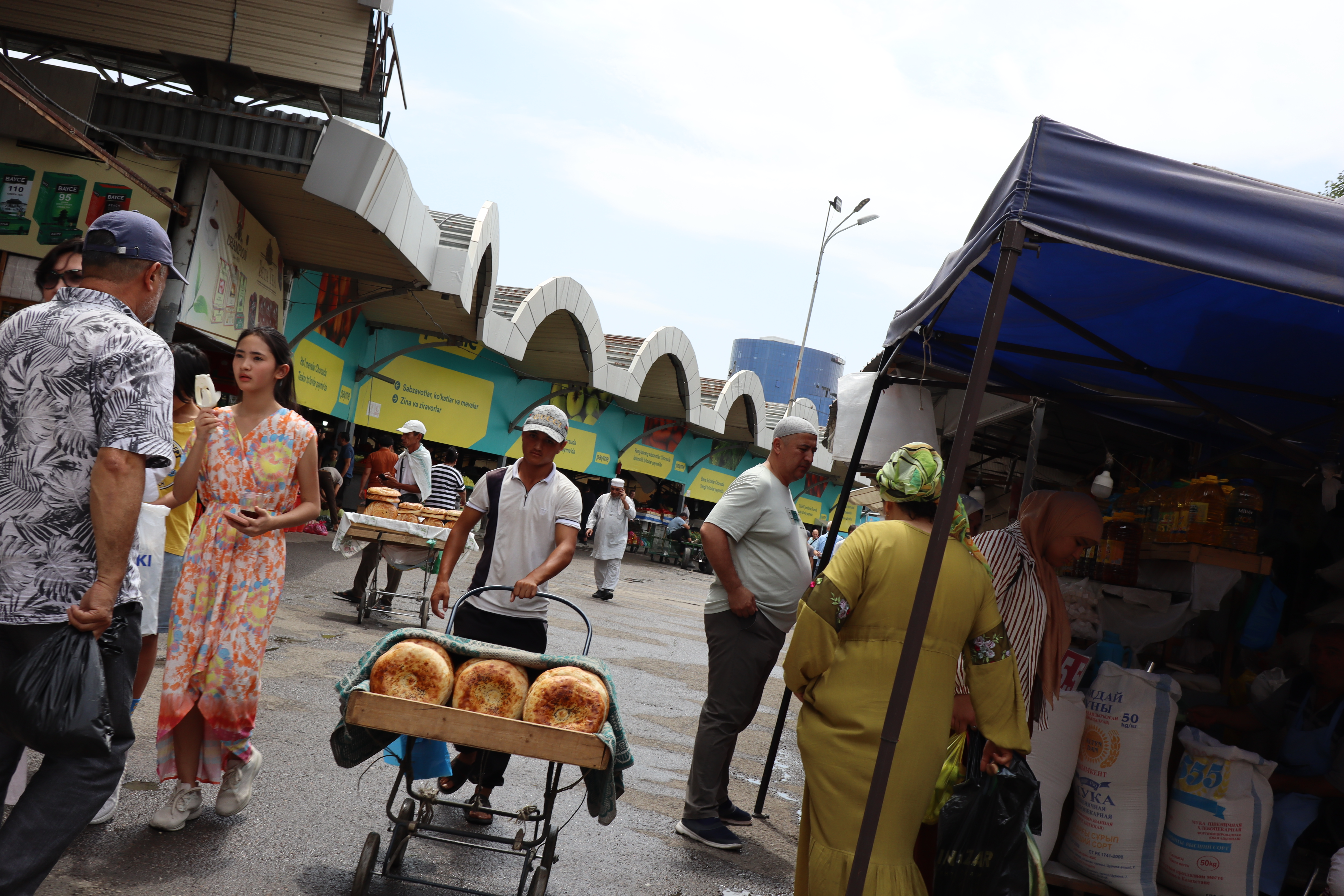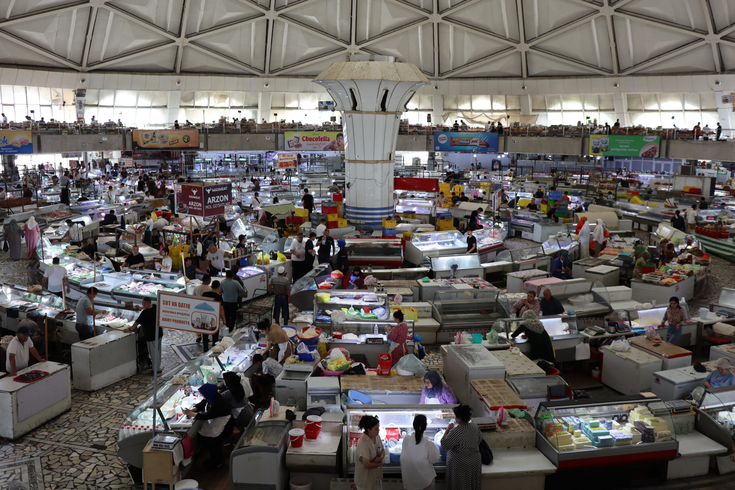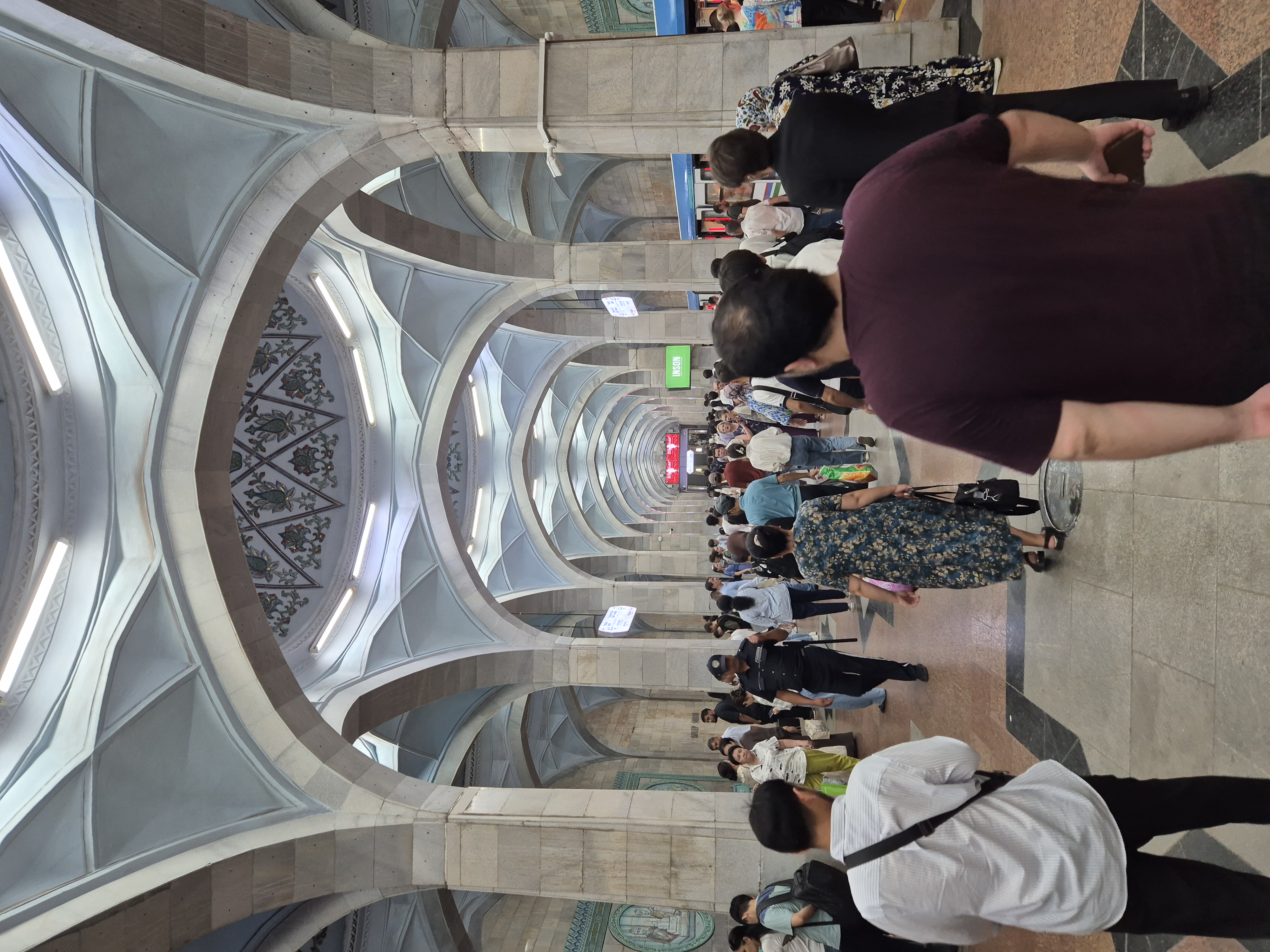Am Vormittag des 07.07.2025 verließ ich zu Fuß Schymkent und versuchte mein Glück nach Taschkent zu trampen. Zuerst musste ich jedoch an den Horden von Taxifahrern vorbei, die versuchten mich aufzuhalten und mich als potentiellen Fahrgast zu gewinnen. Entschieden lehnte ich alle Versuche ab und folgte der Staße in Richtung Taschkent weiter aus der Stadt hinaus. Die penetranten Taxifahrer wurden weniger und gleichzeitig stieg meine Chance auf einen kostenlosen Lift. Grob eine Stunde später wurde ich von einem Kleinbus für umsonst eingesammelt und direkt bis an die Usbekische Grenze gebracht. Sogar ein kaltes Wasser wurde mir vom Fahrer zugeschoben mit den Worten „Kasachstan“. Der Grenzübergang Kaplanbek nach Usbekistan zu dem ich gebracht worden war, war menschenüberlaufen, da der eigentliche Grenzübergang Zhybek Zholi seit einiger Zeit geschlossen war. Trotz vieler Menschen lief die Grenzüberquerung recht reibungslos ab. Endlich in Usbekistan waren es nur noch wenige Kilometer bis nach Taschkent. Der selben Taktik wie aus Schymkent hinaus folgend, distanzierte ich mich erst wieder ein bis zwei Kilometer von der Grenze, bevor ich den Daumen raus hielt und erzielte den selben Erfolg. In der Innenstadt tauschte ich so schnell wie möglich meine restlichen Kasachischen Tenge für Usbekische So’m ein und war plötzlich mit noch größeren Zahlen als bereits in Kasachstan konfrontiert. Ein Euro waren grob 14500 So’m wert. Wie schon in Kasachstan war das Bus- und Bahnfahren innerhalb der Stadt äußerst erschwinglich und kostete nur 3000 So’m. So konnte ich mich die nächsten Tage zügig durch die Stadt bewegen. Besonders die Metro war extrem schnell und praktisch. Wie besprochen traf ich mich am Abend mit Artem, bei dem ich zwei Tage lang übernachten konnte. Die Kehrseite der Medallie war jedoch, dass ich ebenso früh wie er aufstehen und mit ihm das Appartement verlassen musste, da Artem von früh bis spät arbeiten musste. War Artem Daheim, so unterhielten wir uns ausgedehnt über globale Themen und Politik, war Artem am Arbeiten, so trieb ich mich in der Stadt um und erkundete Taschkent ausgiebig. Angefangen beim Amir-Temur-Platz und dem Staatlichen-Temuridenmuseum über den Chorsu-Basar und den Hazrati-Imam-Komplex bis hin zum Tavlat-Tabiat-Museum, nichts war vor mir sicher. Besonders der Chorsu-Basar und der Hazrati-Imam-Komplex waren interessant. Während man auf dem Basar vom Huhn bis zur traditionellen Kleidertracht alles erstehen konnte, was das Herz begehrte, so war der Hazrati-Imam-Komplex eine einzige riesige Baustelle, im Begriff einmal vollkommen neu renoviert und modernisiert zu werden. Zum Abschluss des Tages besuchte ich noch aus Jux die gerade neu eröffnete Tashkent-City-Mall. Die nigelnagelneue Einkaufsmeile strotzte nur so vor Prunk, Markengeschäften und teuren Autos, die in der Mall ausgestellt wurden und schien der neue Magnet innerhalb Taschkents zu sein. So viel Luxus hatte ich ehrlich gesagt nicht in Usbekistan und Taschkent erwartet und verstand ein wenig, warum die Menschen dorthin strömten. Sie waren stolz auf ihr Land, dass es so weit gekommen war.