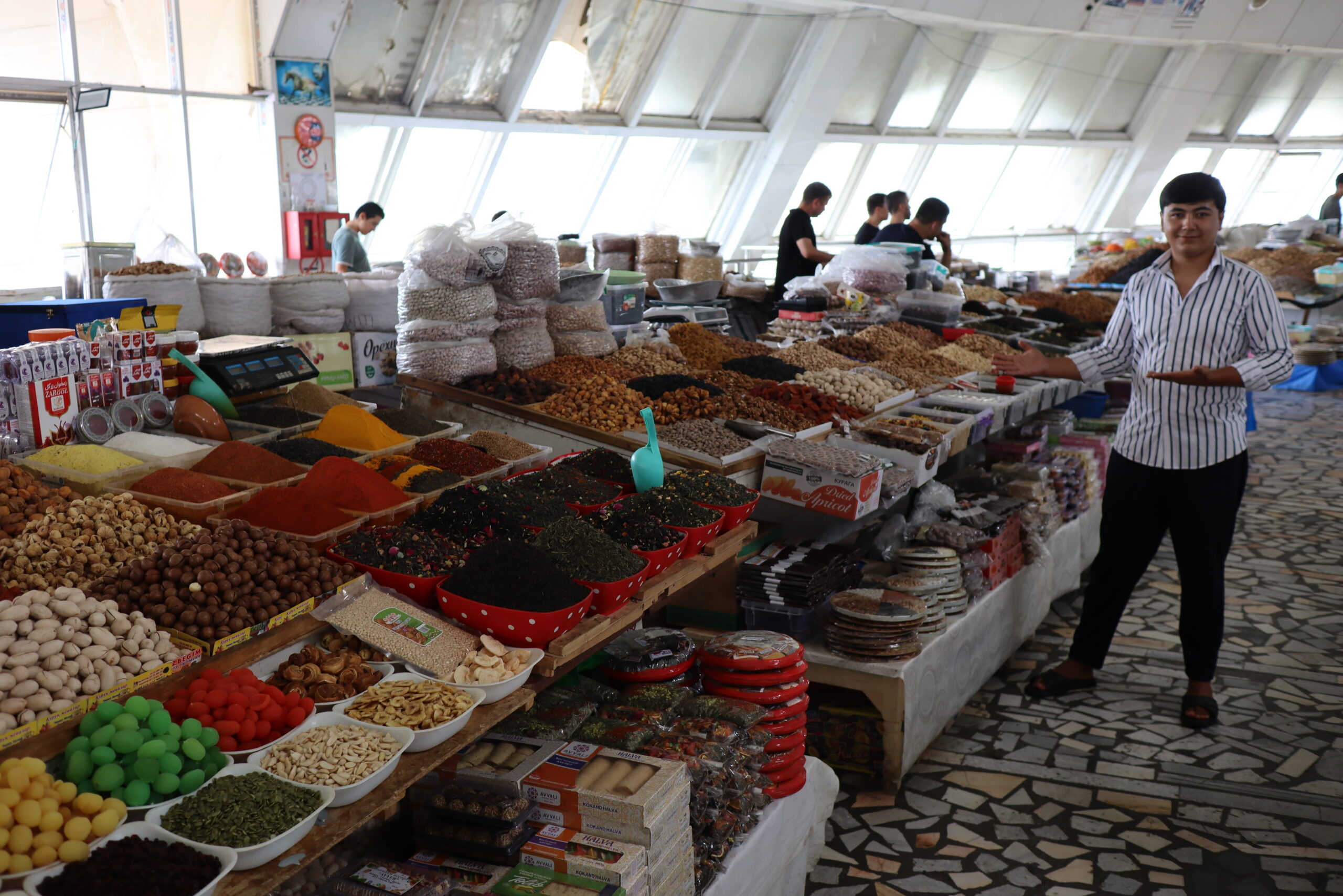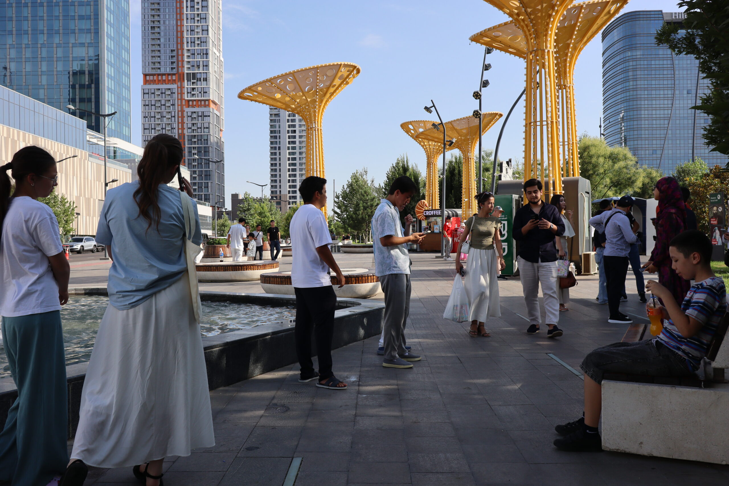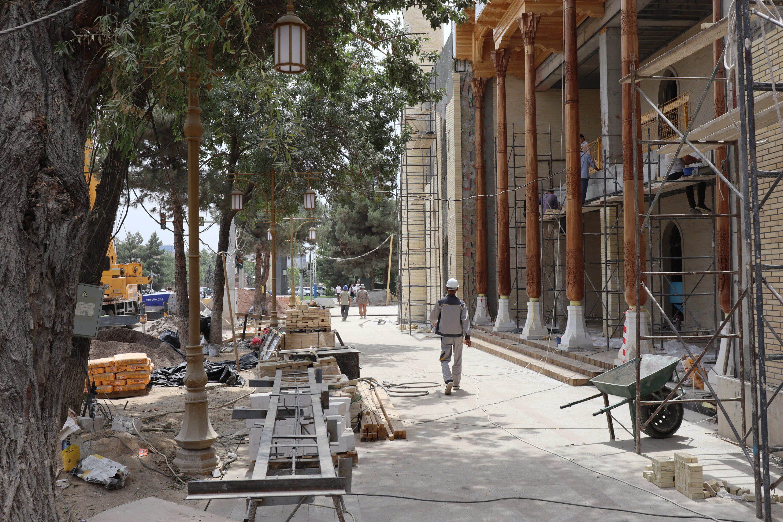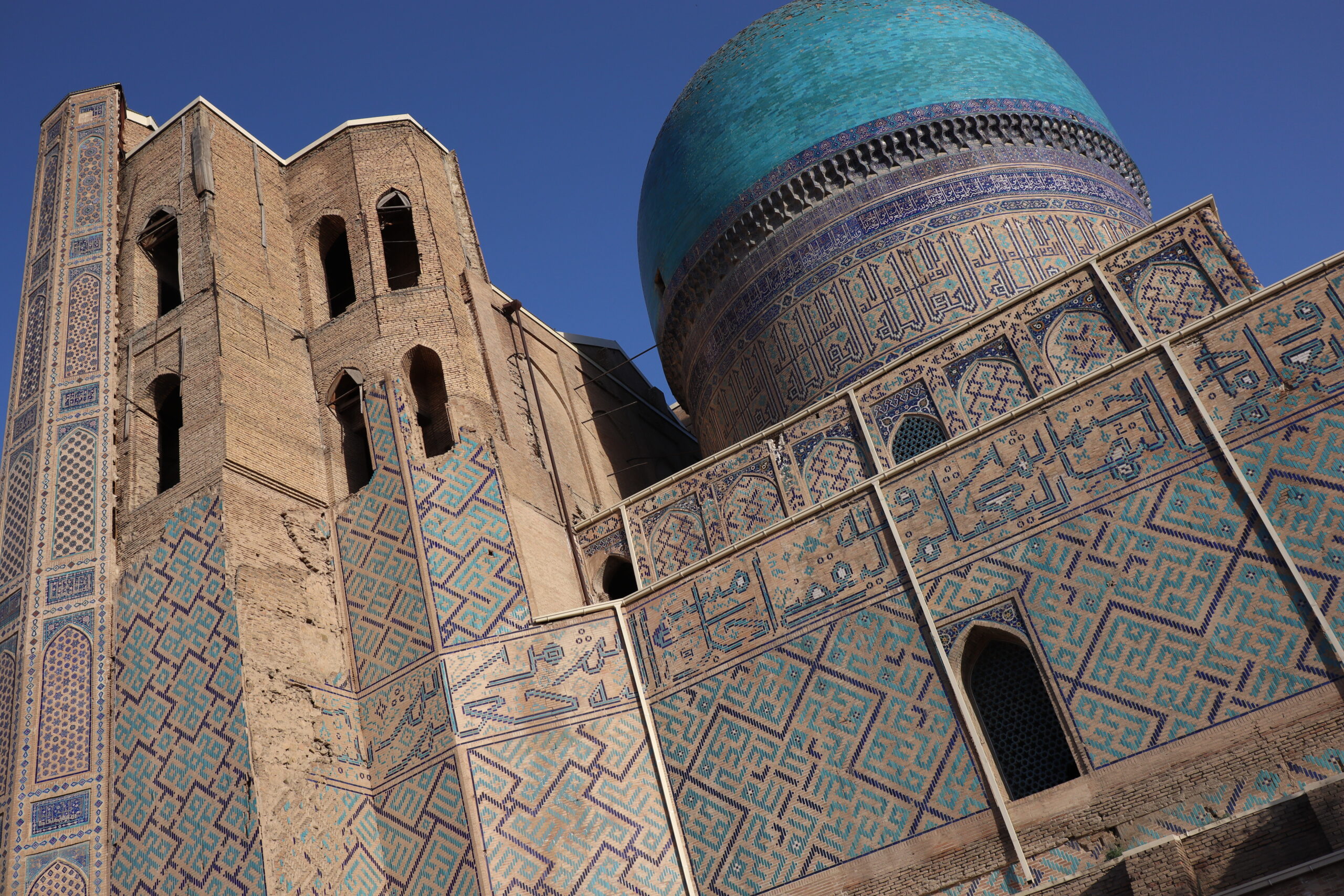 Am Vormittag des 07.07.2025 verließ ich zu Fuß Schymkent und versuchte mein Glück nach Taschkent zu trampen. Zuerst musste ich jedoch an den Horden von Taxifahrern vorbei, die versuchten mich aufzuhalten und mich als potentiellen Fahrgast zu gewinnen. Entschieden lehnte ich alle Versuche ab und folgte der Staße in Richtung Taschkent weiter aus der Stadt hinaus. Die penetranten Taxifahrer wurden weniger und gleichzeitig stieg meine Chance auf einen kostenlosen Lift. Grob eine Stunde später wurde ich von einem Kleinbus für umsonst eingesammelt und direkt bis an die Usbekische Grenze gebracht. Sogar ein kaltes Wasser wurde mir vom Fahrer zugeschoben mit den Worten „Kasachstan“. Der Grenzübergang Kaplanbek nach Usbekistan zu dem ich gebracht worden war, war menschenüberlaufen, da der eigentliche Grenzübergang Zhybek Zholi seit einiger Zeit geschlossen war. Trotz vieler Menschen lief die Grenzüberquerung recht reibungslos ab. Endlich in Usbekistan waren es nur noch wenige Kilometer bis nach Taschkent. Der selben Taktik wie aus Schymkent hinaus folgend, distanzierte ich mich erst wieder ein bis zwei Kilometer von der Grenze, bevor ich den Daumen raus hielt und erzielte den selben Erfolg. In der Innenstadt tauschte ich so schnell wie möglich meine restlichen Kasachischen Tenge für Usbekische So’m ein und war plötzlich mit noch größeren Zahlen als bereits in Kasachstan konfrontiert. Ein Euro waren grob 14500 So’m wert. Wie schon in Kasachstan war das Bus- und Bahnfahren innerhalb der Stadt äußerst erschwinglich und kostete nur 3000 So’m. So konnte ich mich die nächsten Tage zügig durch die Stadt bewegen. Besonders die Metro war extrem schnell und praktisch. Wie besprochen traf ich mich am Abend mit Artem, bei dem ich zwei Tage lang übernachten konnte. Die Kehrseite der Medallie war jedoch, dass ich ebenso früh wie er aufstehen und mit ihm das Appartement verlassen musste, da Artem von früh bis spät arbeiten musste. War Artem Daheim, so unterhielten wir uns ausgedehnt über globale Themen und Politik, war Artem am Arbeiten, so trieb ich mich in der Stadt um und erkundete Taschkent ausgiebig. Angefangen beim Amir-Temur-Platz und dem Staatlichen-Temuridenmuseum über den Chorsu-Basar und den Hazrati-Imam-Komplex bis hin zum Tavlat-Tabiat-Museum, nichts war vor mir sicher. Besonders der Chorsu-Basar und der Hazrati-Imam-Komplex waren interessant. Während man auf dem Basar vom Huhn bis zur traditionellen Kleidertracht alles erstehen konnte, was das Herz begehrte, so war der Hazrati-Imam-Komplex eine einzige riesige Baustelle, im Begriff einmal vollkommen neu renoviert und modernisiert zu werden. Zum Abschluss des Tages besuchte ich noch aus Jux die gerade neu eröffnete Tashkent-City-Mall. Die nigelnagelneue Einkaufsmeile strotzte nur so vor Prunk, Markengeschäften und teuren Autos, die in der Mall ausgestellt wurden und schien der neue Magnet innerhalb Taschkents zu sein. So viel Luxus hatte ich ehrlich gesagt nicht in Usbekistan und Taschkent erwartet und verstand ein wenig, warum die Menschen dorthin strömten. Sie waren stolz auf ihr Land, dass es so weit gekommen war.