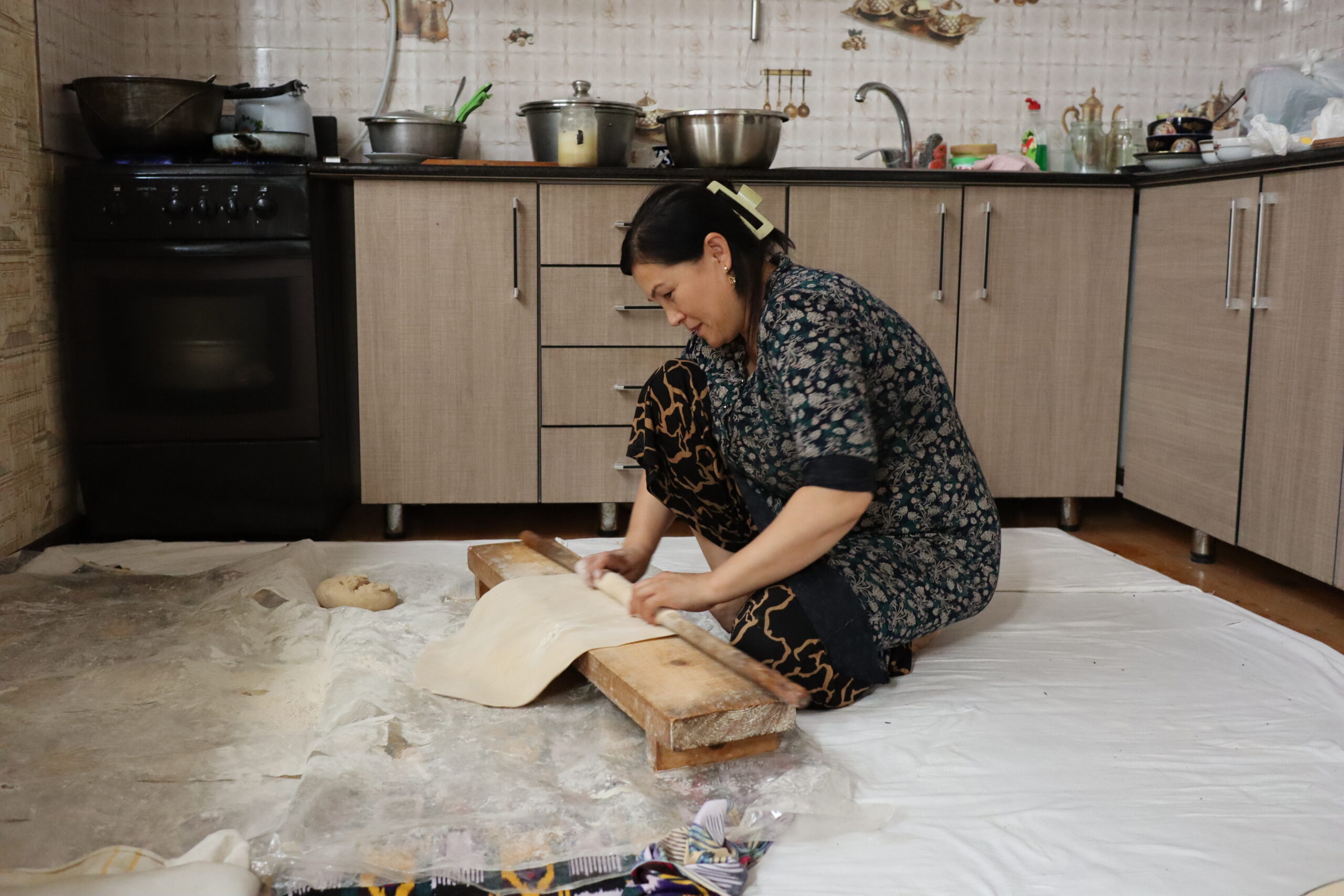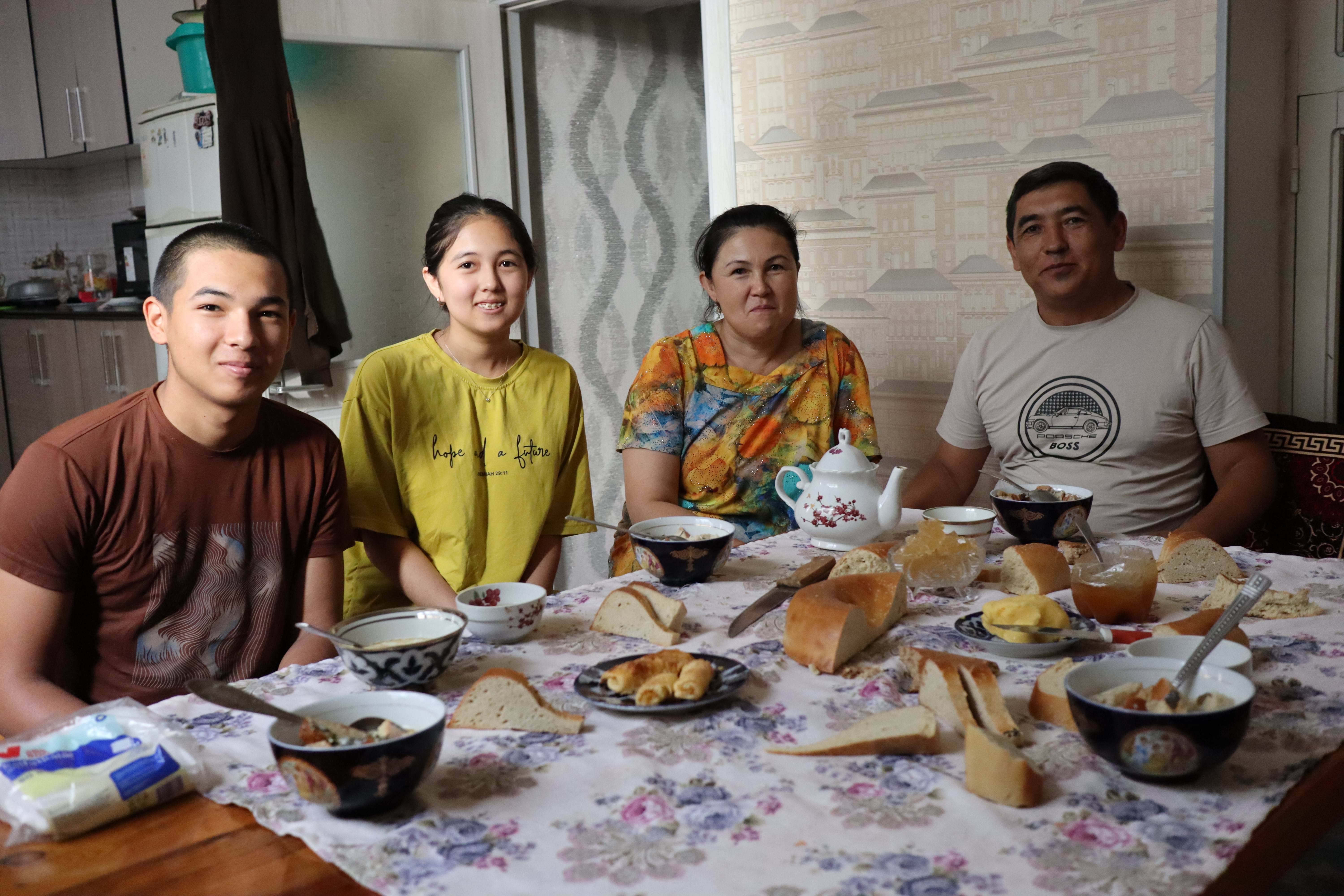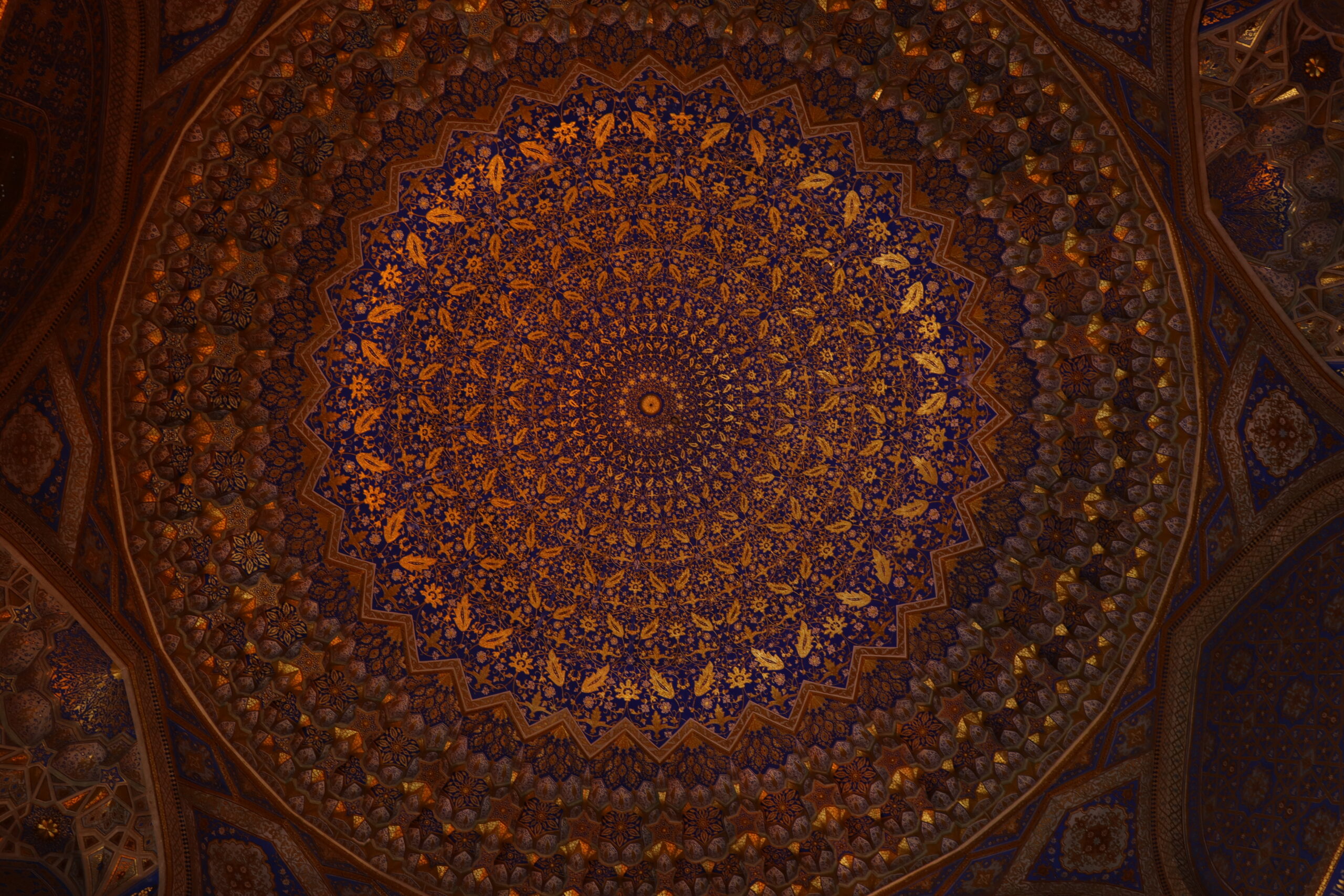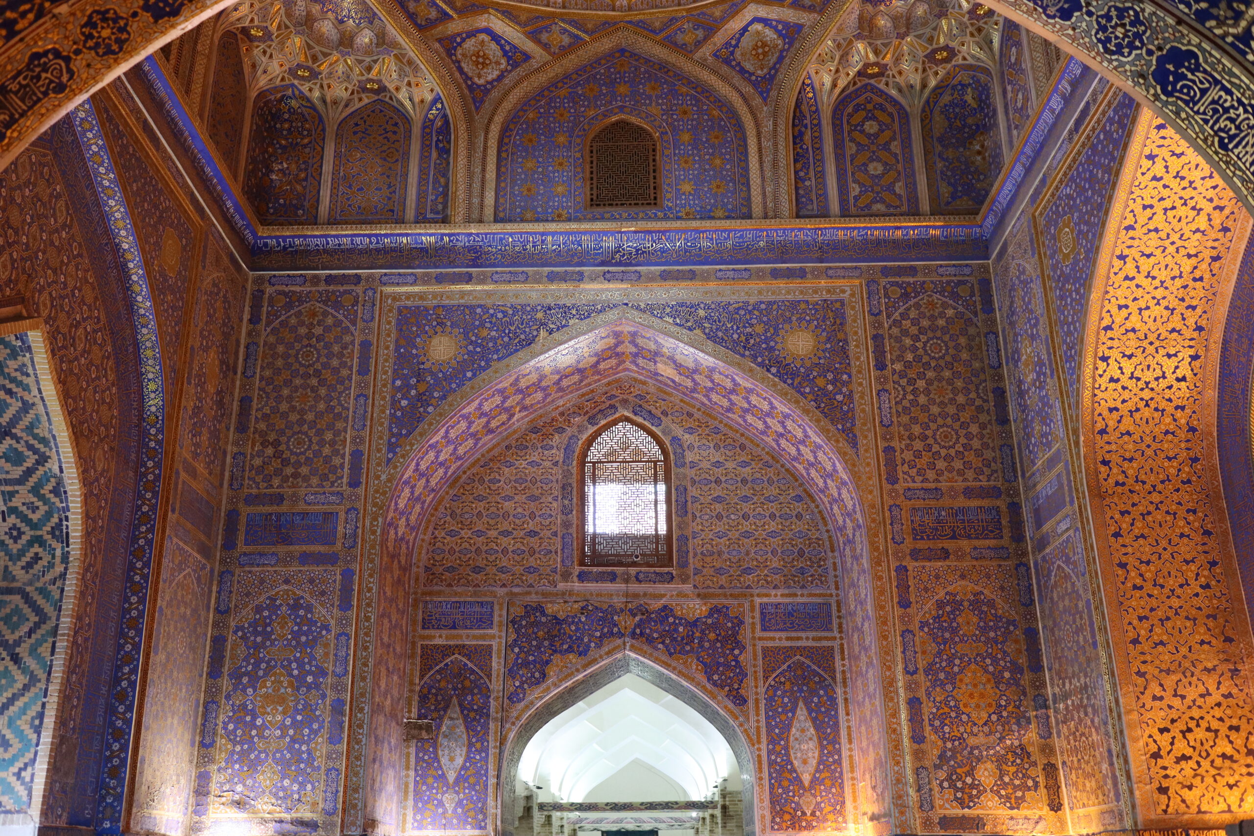 Am Folgetag, dem 11.07.2025, genoss ich das morgentliche, im Hostelpreis eingeschlossene, leckere Frühstück, ließ alle meine Habseligkeiten im Hostel zurück und machte mich auf, Samarkand eingehender zu erforschen. Angefangen bei Ulug-Begs Observatorium und dem Siyob Bazaar über die Bibi-Khanum Moschee bis hin zur Hauptattraktion Samarkands, dem Registan Square mit seinen drei beeindruckenden Madrasas (islamischen Hochschulen) ließ ich die Stadt auf mich wirken. Die Madrasas und Moscheen Samarkands waren wirklich beeindruckend. Feine, in der Sonne bläulich leuchtende Mosaike, waren ein besonders herausstechendes Merkmal in der historischen Architektur. Als sich der Tag dem Ende zuneigte und die Sonne dem Mond Platz gemacht hatte, füllte sich der Registan Square und das wirkliche Leben begann. Über den Tag war es einfach zu warm und nur die Reisenden mit ihren Wasserflaschen setzten sich der gnadenlosen Sonne aus, während die Einheimischen im Schatten hockten und auf den erlösenden Sonnenuntergang warteten. Die meisten Touristen hatten sich verzogen und waren durch usbekische Familien mit ihren Kindern ersetzt worden, die überall lachend herum rannten. Und alle waren sie hier, um die anstehende Lightshow zu genießen und sich dabei zu sozialisieren. Bald waren die Treppen des großen Platzes gefüllt und ein Lichterspektakel begann sich an den Wänden der Madrasas abzuspielen. Mit mehreren starken Beamern wurde eine Geschichte an die Wände projeziert und visuell vorgetragen. Die Erzählung handelte von der reichen Vergangenheit Samarkands und dem Erbe der Stadt, als Knotenpunkt der Seidenstraße. Die Lightshow war beindruckend, doch endete so schnell, wie sie begonnen hatte. Und ich wurde langsam unruhig. Eigentlich war ich zur Show mit Diyorbek verabredet gewesen, bei dem ich heute übernachten wollte, doch war er bis zu diesem Moment nicht aufgetaucht. Während ich so in Gedanken wartend auf den Stufen Registans saß, wurde ich von einer jungen Frau auf gutem English angesprochen. Bald gesellte sich ihr jüngerer Bruder dazu, und wir unterhielten uns fast über eine Stunde auf Englisch. Der Name des Mädchens war Farangiz und ihr Bruder hieß Asilbek. Beide waren mit ihren Eltern, Vater Akbar und Mutter Dilafruz zum Registan Platz gekommen, um die Show zu sehen und ihr Englisch zu verbessern. Dies erreichten sie indem sie auf Reisende zugingen – von ihren Eltern vorgeschickt, die nicht viel weiter saßen – und diese in ein freundliches Gespräch verwickelten. Wie es schien war das Los diesen Abend auf mich gefallen und so spielte ich mit und unterhielt mich mit ihnen. Die Themen variierten stark, doch das machte nichts aus, solange die Sprache geübt werden konnte. Mitten im Gespräch bekam ich eine Nachricht von Diyorbek. Er war in einen Autounfall verwickelt worden und jetzt im Krankenhaus zum Checkup. Er war ok, würde mich aber an diesem Tag nicht mehr hosten können. Ich schilderte Farangiz und Asilbek meine Lage. Kurze Zeit später saß ich mit der ganzen Familie in ihrem Chevrolet auf dem Weg zu ihnen nach Hause. Akbar und Dilafruz hatten mich eingeladen, eine Win-win Situation: Ihre Kinder bekamen die Möglichkeit ihr Englisch weiter an mir zu üben und zu verbessern und ich erhielt im Gegenzug eine äußerst spontane Übernachtungsgelegenheit. So kam es, dass ich in Samarkand in das tägliche Leben einer usbekischen Familie eintauchen durfte. Wie mittlerweile gewohnt, wurde eine auf dem Boden des Wohnzimmers ausgerollte Kurpatscha (dicke Wolldecke) zu meinem Nachtlager, wo ich zusammen mit Asilbek übernachtete. Es war Wochenende und so konnten alle Familienmitglieder ausschlafen.