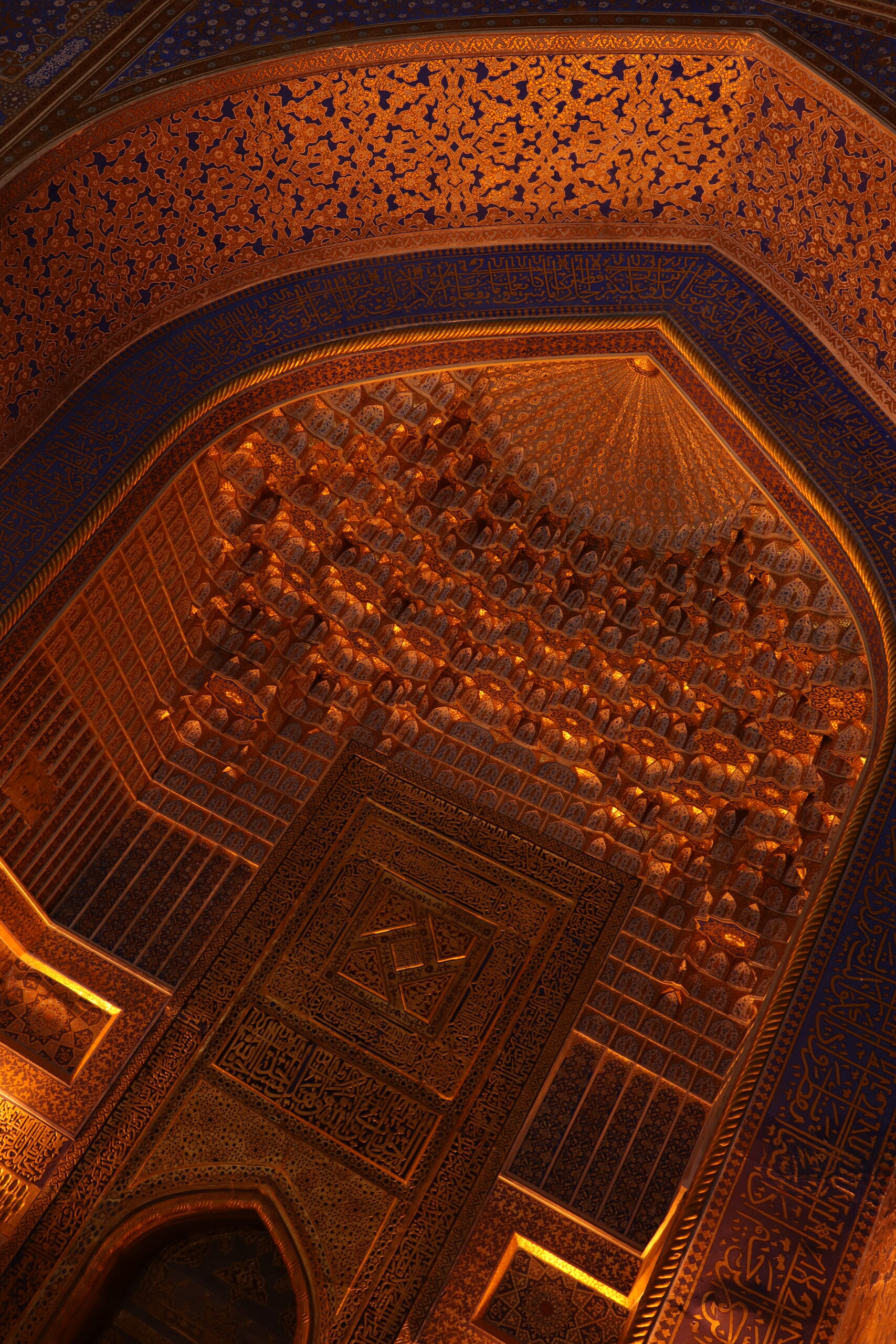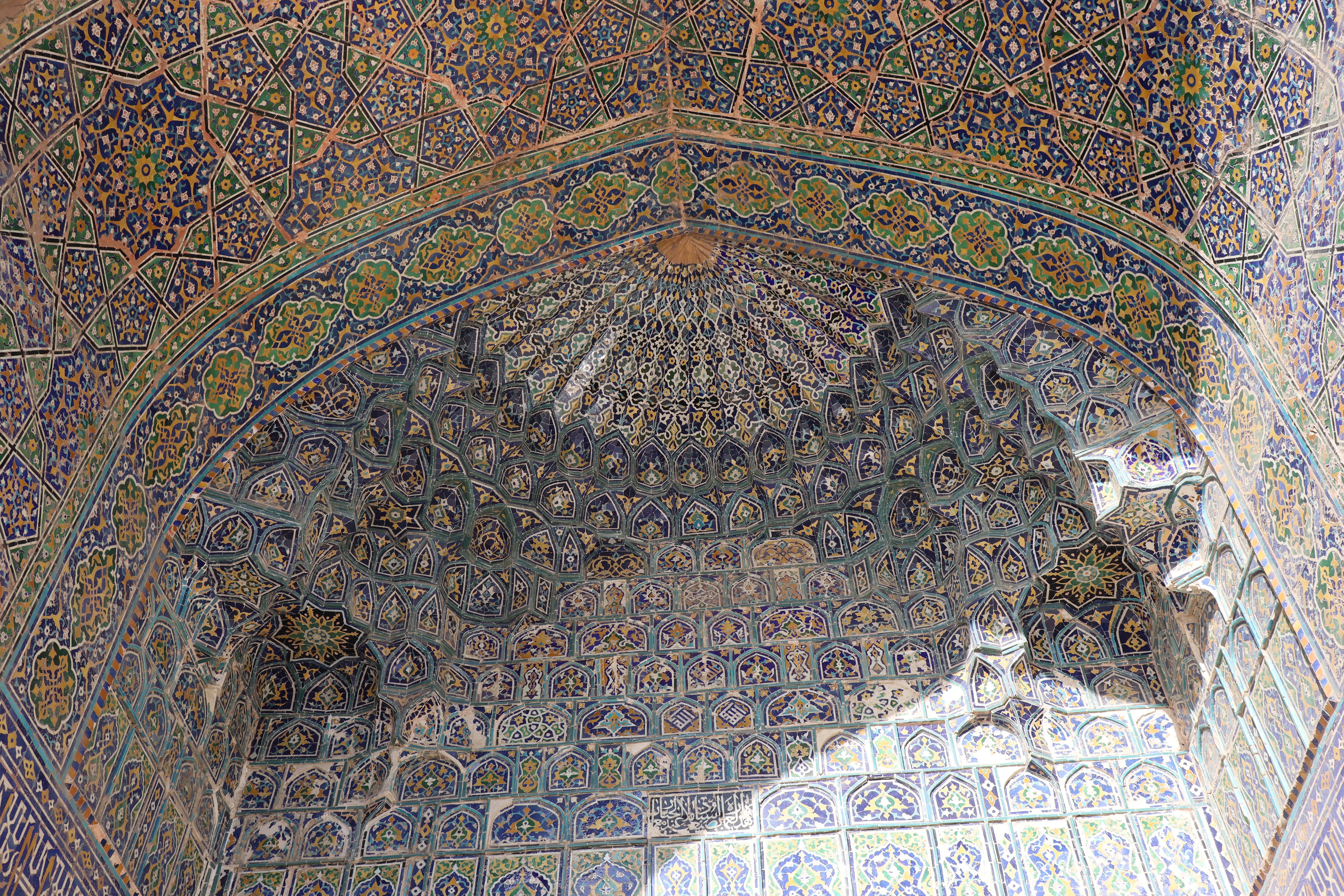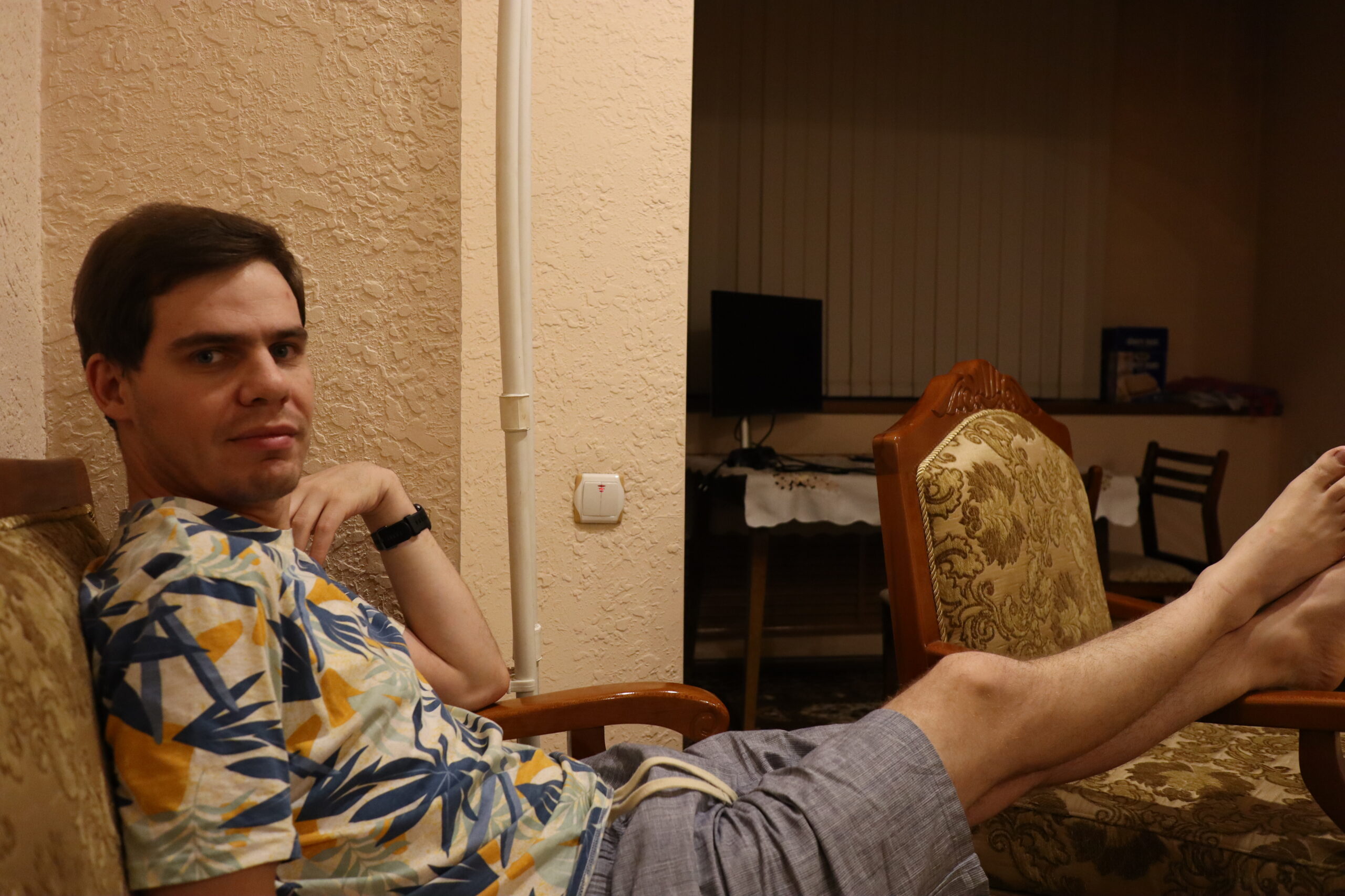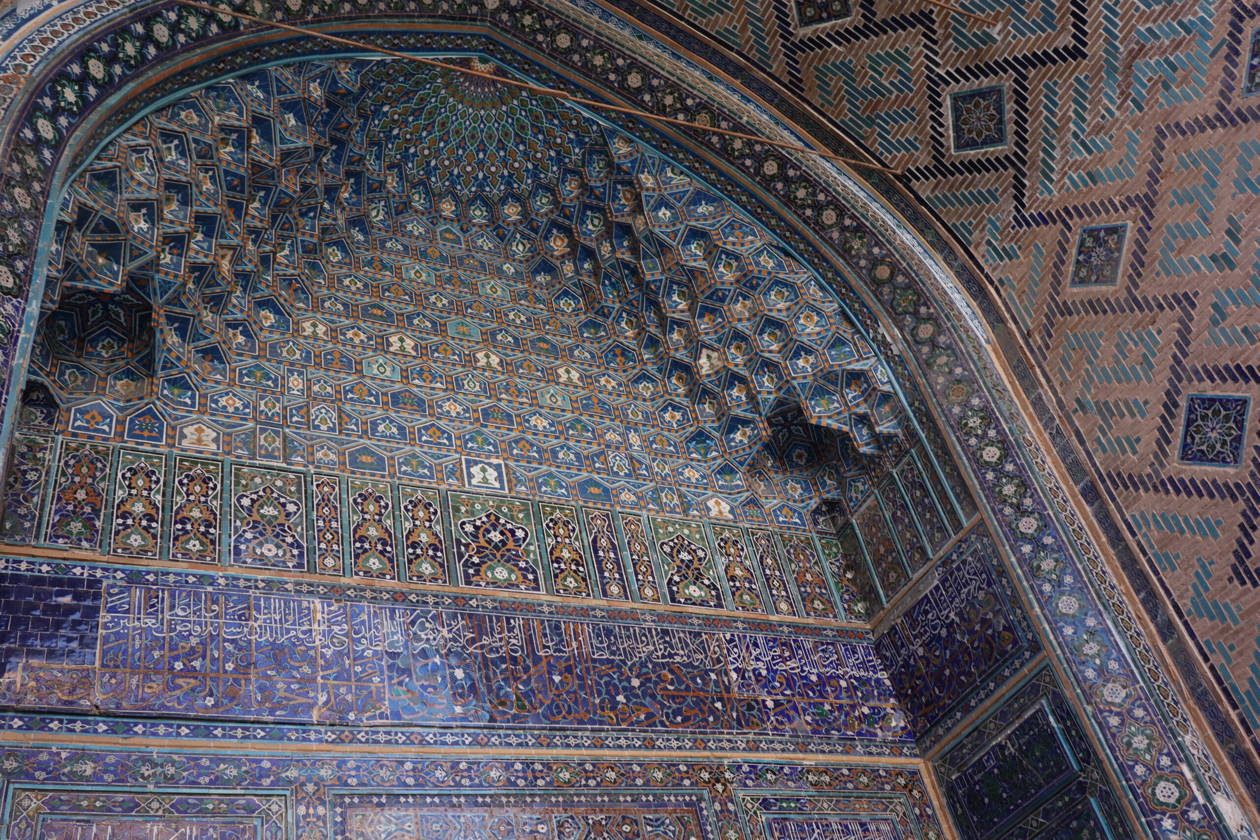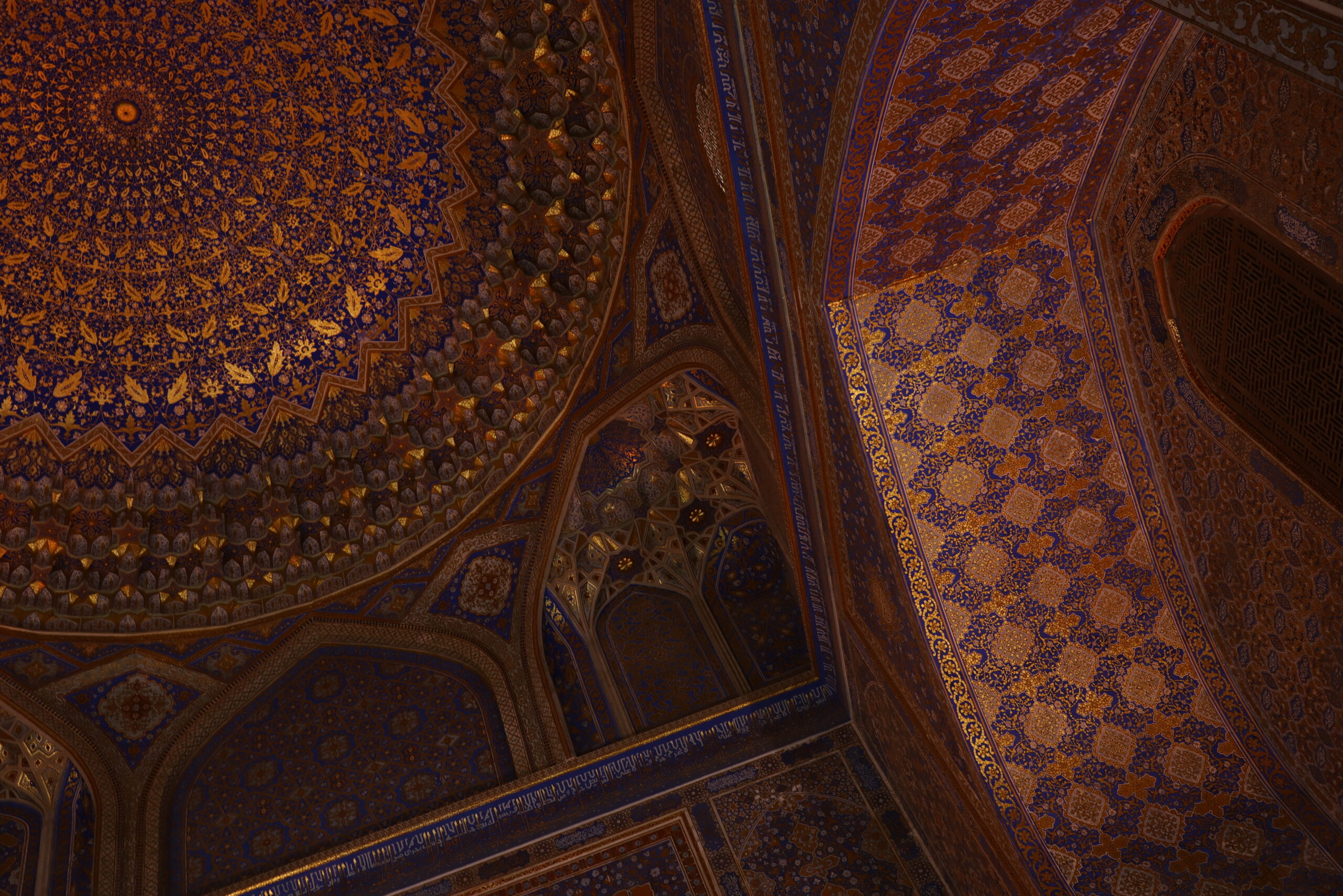 Am Folgetag, dem 11.07.2025, genoss ich das morgentliche, im Hostelpreis eingeschlossene, leckere Frühstück, ließ alle meine Habseligkeiten im Hostel zurück und machte mich auf, Samarkand eingehender zu erforschen. Angefangen bei Ulug-Begs Observatorium und dem Siyob Bazaar über die Bibi-Khanum Moschee bis hin zur Hauptattraktion Samarkands, dem Registan Square mit seinen drei beeindruckenden Madrasas (islamischen Hochschulen) ließ ich die Stadt auf mich wirken. Die Madrasas und Moscheen Samarkands waren wirklich beeindruckend. Feine, in der Sonne bläulich leuchtende Mosaike, waren ein besonders herausstechendes Merkmal in der historischen Architektur. Als sich der Tag dem Ende zuneigte und die Sonne dem Mond Platz gemacht hatte, füllte sich der Registan Square und das wirkliche Leben begann. Über den Tag war es einfach zu warm und nur die Reisenden mit ihren Wasserflaschen setzten sich der gnadenlosen Sonne aus, während die Einheimischen im Schatten hockten und auf den erlösenden Sonnenuntergang warteten. Die meisten Touristen hatten sich verzogen und waren durch usbekische Familien mit ihren Kindern ersetzt worden, die überall lachend herum rannten. Und alle waren sie hier, um die anstehende Lightshow zu genießen und sich dabei zu sozialisieren. Bald waren die Treppen des großen Platzes gefüllt und ein Lichterspektakel begann sich an den Wänden der Madrasas abzuspielen. Mit mehreren starken Beamern wurde eine Geschichte an die Wände projeziert und visuell vorgetragen. Die Erzählung handelte von der reichen Vergangenheit Samarkands und dem Erbe der Stadt, als Knotenpunkt der Seidenstraße. Die Lightshow war beindruckend, doch endete so schnell, wie sie begonnen hatte. Und ich wurde langsam unruhig. Eigentlich war ich zur Show mit Diyorbek verabredet gewesen, bei dem ich heute übernachten wollte, doch war er bis zu diesem Moment nicht aufgetaucht. Während ich so in Gedanken wartend auf den Stufen Registans saß, wurde ich von einer jungen Frau auf gutem English angesprochen. Bald gesellte sich ihr jüngerer Bruder dazu, und wir unterhielten uns fast über eine Stunde auf Englisch. Der Name des Mädchens war Farangiz und ihr Bruder hieß Asilbek. Beide waren mit ihren Eltern, Vater Akbar und Mutter Dilafruz zum Registan Platz gekommen, um die Show zu sehen und ihr Englisch zu verbessern. Dies erreichten sie indem sie auf Reisende zugingen – von ihren Eltern vorgeschickt, die nicht viel weiter saßen – und diese in ein freundliches Gespräch verwickelten. Wie es schien war das Los diesen Abend auf mich gefallen und so spielte ich mit und unterhielt mich mit ihnen. Die Themen variierten stark, doch das machte nichts aus, solange die Sprache geübt werden konnte. Mitten im Gespräch bekam ich eine Nachricht von Diyorbek. Er war in einen Autounfall verwickelt worden und jetzt im Krankenhaus zum Checkup. Er war ok, würde mich aber an diesem Tag nicht mehr hosten können. Ich schilderte Farangiz und Asilbek meine Lage. Kurze Zeit später saß ich mit der ganzen Familie in ihrem Chevrolet auf dem Weg zu ihnen nach Hause. Akbar und Dilafruz hatten mich eingeladen, eine Win-win Situation: Ihre Kinder bekamen die Möglichkeit ihr Englisch weiter an mir zu üben und zu verbessern und ich erhielt im Gegenzug eine äußerst spontane Übernachtungsgelegenheit. So kam es, dass ich in Samarkand in das tägliche Leben einer usbekischen Familie eintauchen durfte. Wie mittlerweile gewohnt, wurde eine auf dem Boden des Wohnzimmers ausgerollte Kurpatscha (dicke Wolldecke) zu meinem Nachtlager, wo ich zusammen mit Asilbek übernachtete. Es war Wochenende und so konnten alle Familienmitglieder ausschlafen.