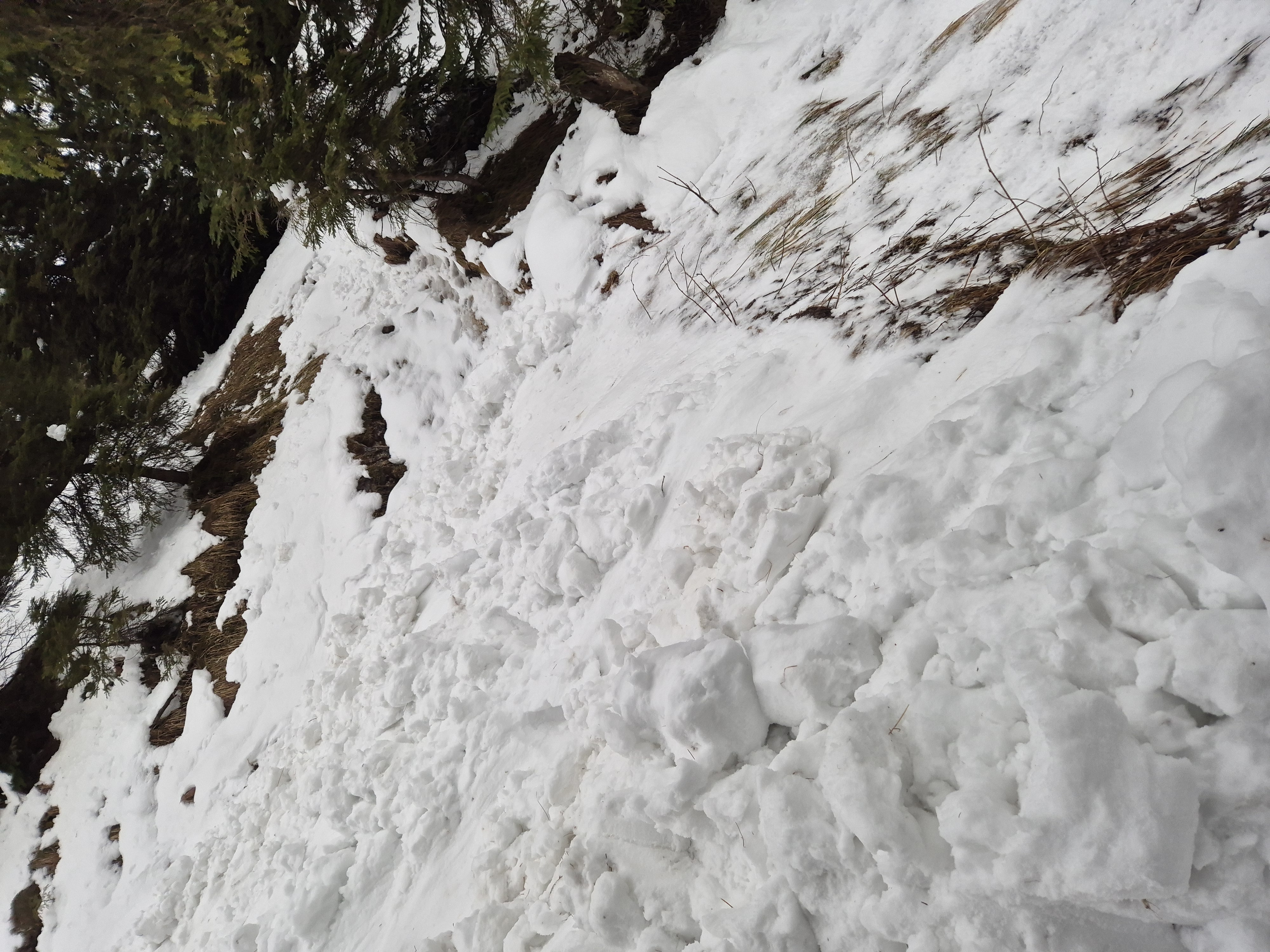 Der Aufstieg war alles andere als einfach und je höher ich kam, desto häufiger säumte Schnee den schmalen Pfad, bis dieser bald ganz von Schnee und Eis bedeckt war. Ich war froh, Grödel und Gamaschen gekauft zu haben, streifte beide über und lief weiter. Alsbald war alles mit Schnee bedeckt und manchmal sank ich über einen Meter tief mit einem Bein im Schnee ein. Schweißnass, da jeder Tritt äußerster Aufmerksamkeit bedurfte, wanderte ich so bis zum Tegelberhaus und überquerte dabei durch Lawinen überschüttete Bereiche, wo der Weg zur Unkenntlichkeit überrollt worden war.
